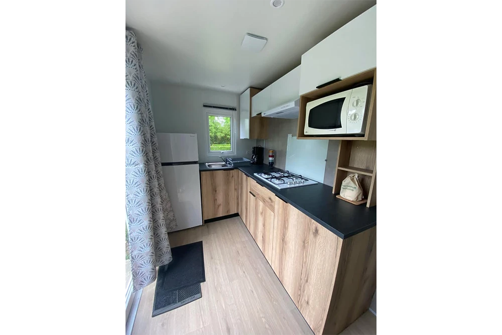 Nouveau locatif 2025 avec une cuisine qui donne sur la terrasse. Idéal pour un séjour au calme et au grand air.