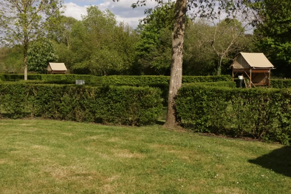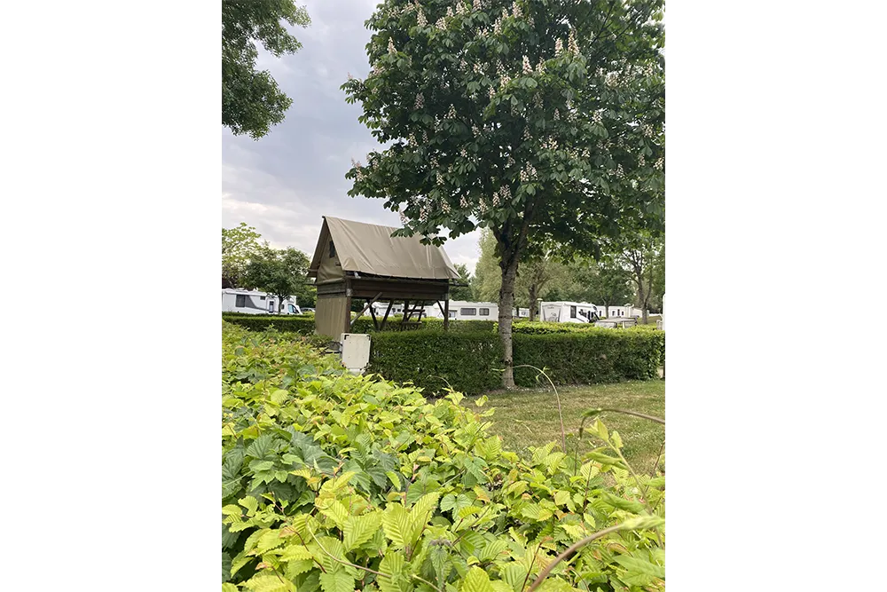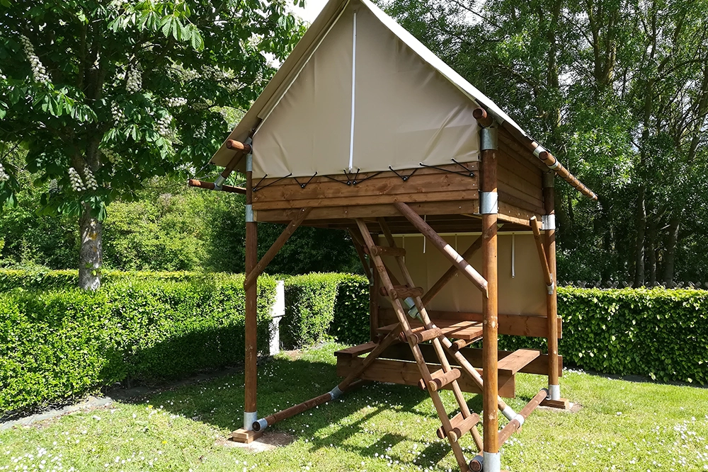 - Hébergement composé d’une structure en bois sur pilotis et de toiles